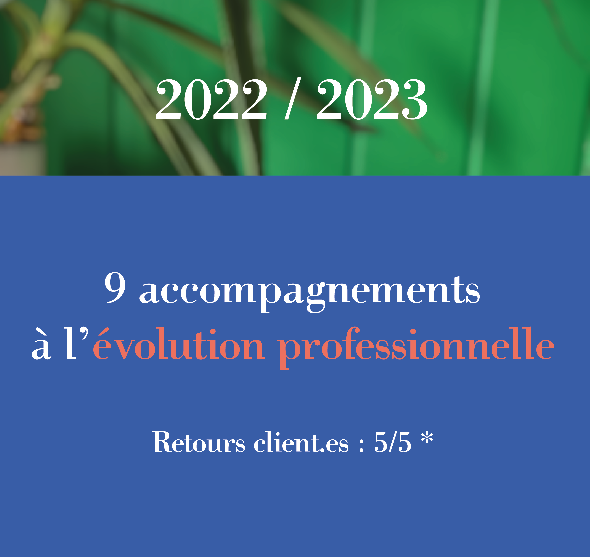 - 9 accompagnements à l’évolution professionnelle sur 2022- 2023 (6 en 2023)