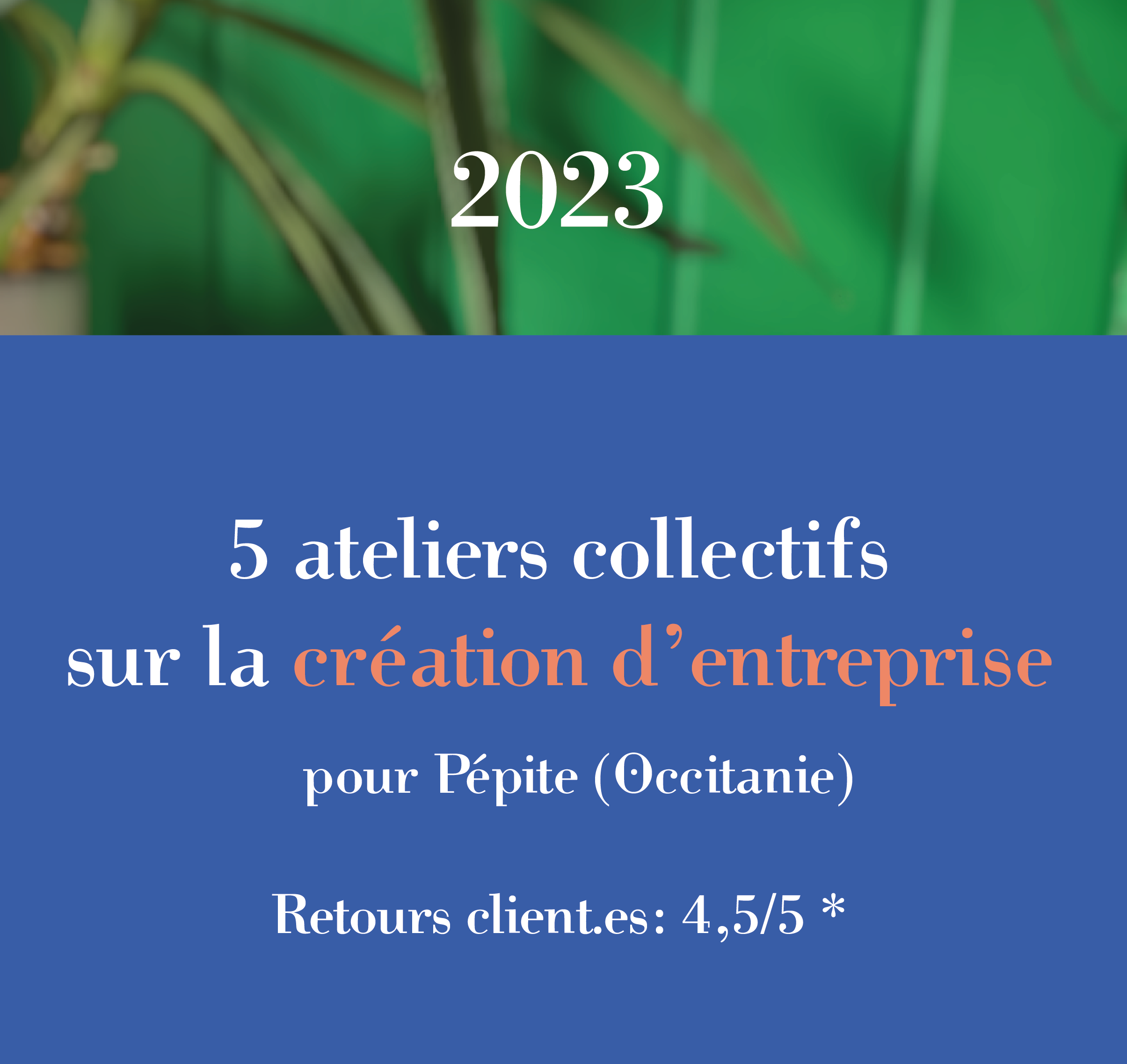- 5 ateliers collectifs (pour Pépite / Université fédérale de Toulouse et de Perpignan)